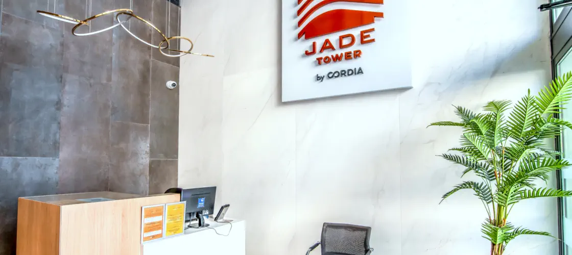 with Jade Delux Home logo on the wall. You'll